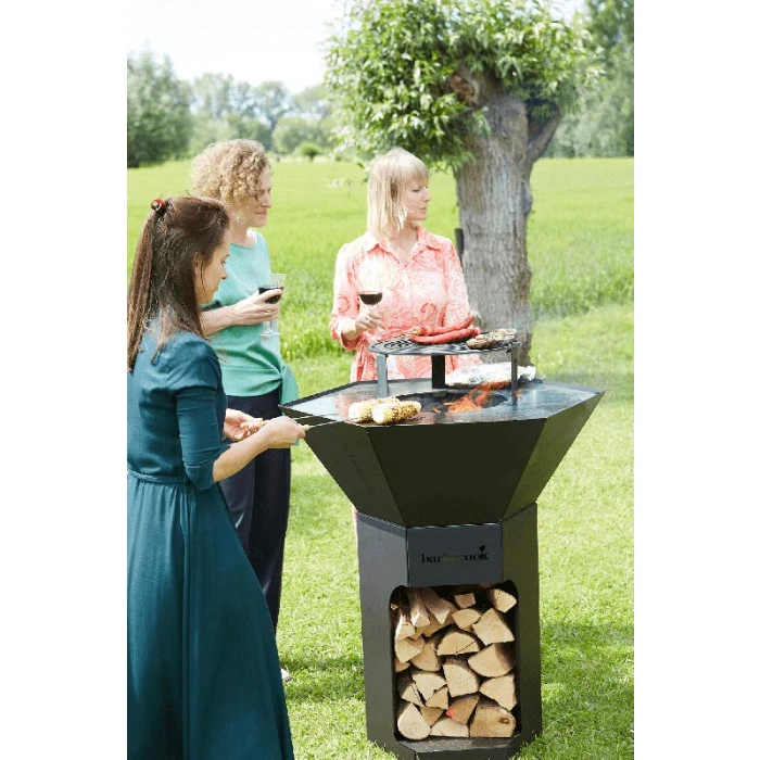 Fonctionnant au charbon ou au bois, il vous propose un espace de cuisson généreux autour duquel vous pouvez vous rassembler pour cuisiner entre amis ou en famille, le tout en vous réchauffant.