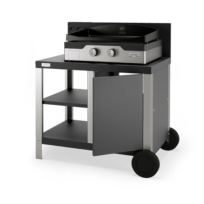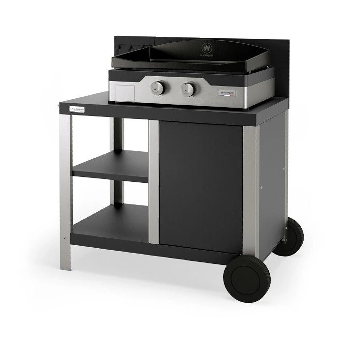 La desserte Le Marquier Signature Allure Duo accueille parfaitement la plancha Allure 260 Duo et vous sera d’une grande aide pour vos repas en extérieur. En acier peinture époxy coloris noir et en inox, elle arbore un style sobre qui se mariera parfaitement avec cette plancha. Elle est également très resistante aux agressions et intempéries extérieures.